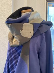 アートを身に着ける、そんなスカーフ・ストールやコート類などは、見る角度で模様や色彩が違うので、一つで幾つもの楽しみ方ができます。