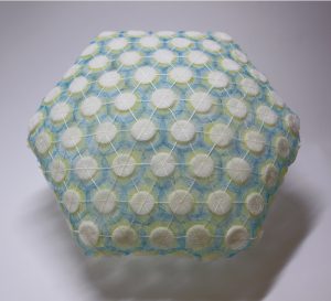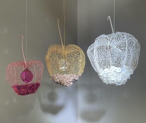 川島テキスタイルスクールにて染織を学び、在校中より葉脈を縫い合わせた造形作品を制作しています。