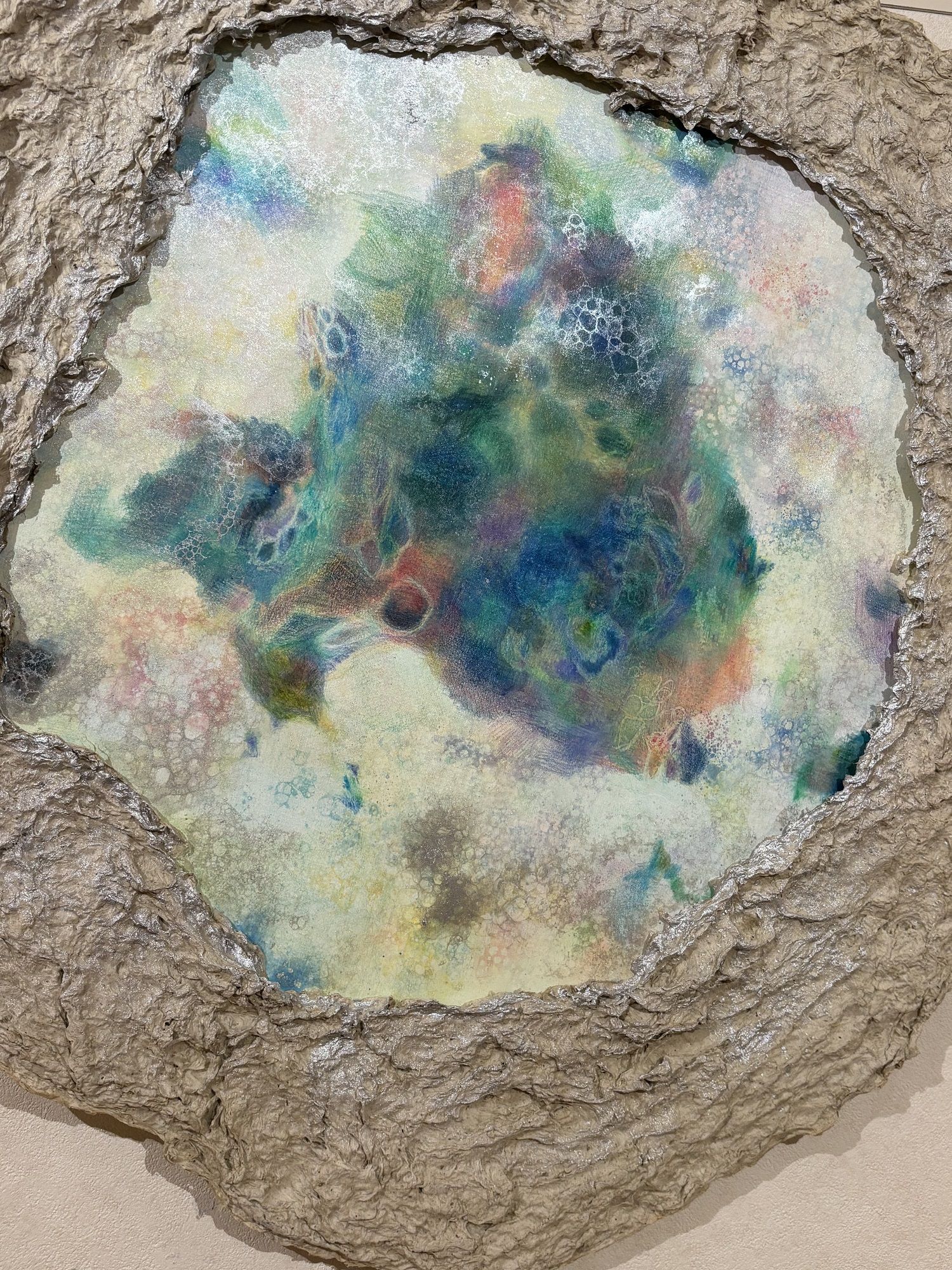 她的灵感来源于那些通过五感触动心灵的瞬间,例如潜藏在日常生活中的细微变化与微风的气息。光的共鸣、层叠的色彩与形态,在她的作品中温柔地照亮记忆与情感。