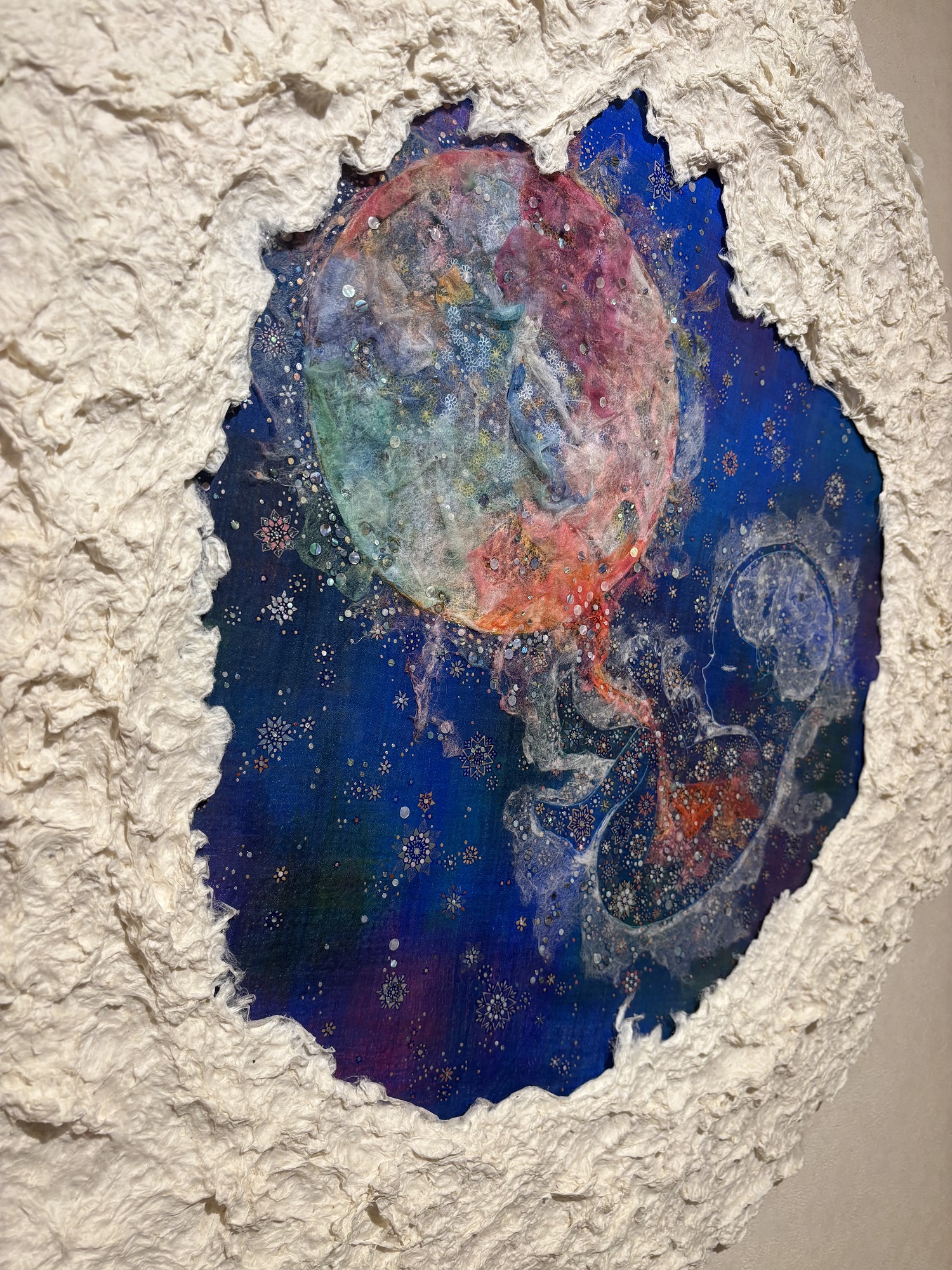 Her diverse activities include designing amulets and votive plaques for Ikoma City’s Ikoma Shrine, hosting live art events, and being selected as the first artist-in-residence at the JW Marriott Hotel Nara, where she has presented exhibitions and spatial installations.