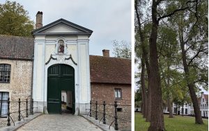 ベギン会修道院 の鐘の音が響く中、白壁が並ぶ静謐な庭園と修道院建築そして木々の佇まいが織りなす落ち着いた美しさを独り占めできました。