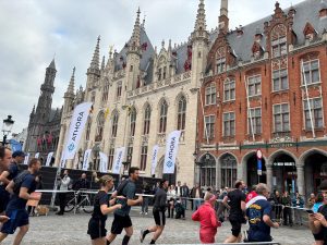 マルクト広場では鐘楼と屋根が面白いギルドハウスが並んでいます。マラソン大会のためランナーが永遠と30分以上横切るので、どれだけ多くの人が参加してるのかと驚きました!