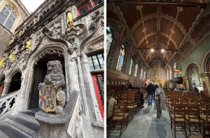 ブルグ広場には美しい4つ建物が並んでいます。ベルギー最古の市庁舎はファサードにはたくさんの紋章と彫像と3 本の尖塔が印象的な建物。