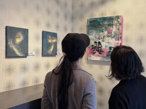 初日当日まで誰がどんな作品かは誰も全く知らされていませんが、持ち寄った各自の作風からコーナーを決めていき、手際良く展示していく様子からチームワークの良さを感じました。