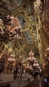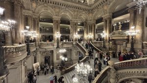 一度アバルトマンに戻り着替えてから、開場時間に入館し開演までの1時間も、エントランスホールでの人々の様子や華やかなオペラ座の雰囲気も楽しみました。