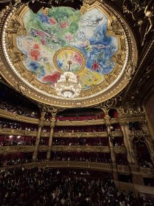 ホール内は豪華絢爛なネオ・バロック形式ですがクラシックな天井画ではなくフランス人ではないシャガールの鮮かな色彩で夢のような絵が描かれているというのがこのホールの面白さです。