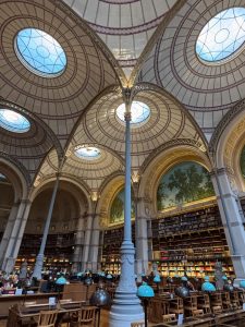 国立図書館のラブルーストの閲覧室は、鉄とガラスを組み合わせた構造で、大きなドーム型のガラス屋根と鉄骨の柱が特徴です。