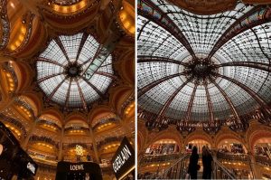 ギャラリーラファイエットではアール・ヌーヴォーを象徴するステンドガラスのクーポール(丸天井)の真下を空中散歩できるガラスウォークはお薦めです。