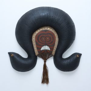 今展では普段から影響を受けている存在として仮面やスピリットボード(パプアニューギニアの霊板と呼ばれるもの)等を自身を通して表出させた作品群を展示します。